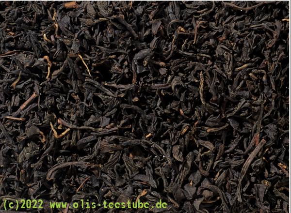 Shaowu liegt im Norden der Provinz Fujian und ist landläufig als Hauptstadt der chinesischen Rauchtee-Produktion bekannt. Auch für diesen Tee aus kontrolliert biologischem Anbau werden in der Regel reife große Teeblätter verwendet, deren Konsistenz hervorragend mit den häufigen Räuchervorgängen harmoniert und für ein gelungenes, vollwürziges Erlebnis sorgt. Ein wirklich schön gleichmäßig gearbeitetes Blatt, anthrazitfarben durchsetzt, mit einigen goldenen Tips. In der Tasse vollmundig, mit weich-rauchigen Noten.