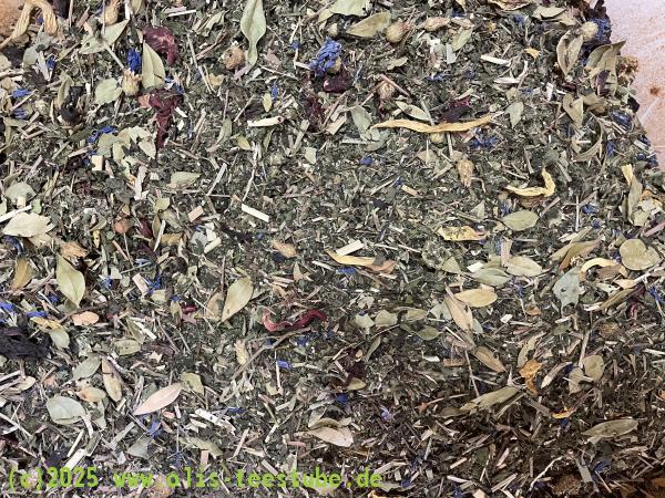 Zutaten: Melissenkraut*, Eisenkraut*, Verbenen*, Lemongras*, Hibiskus*, Sonnenblumenblüten*, Kornblumenblüten*,