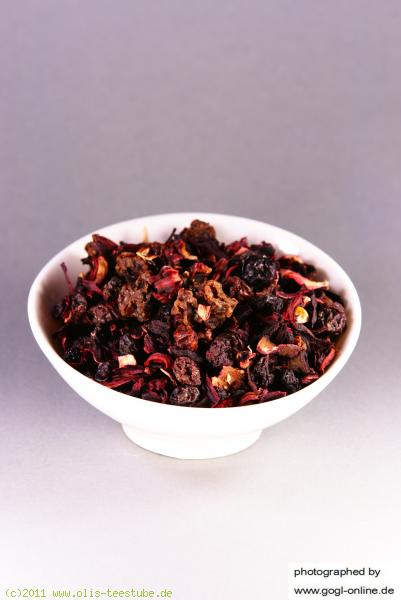 Zutaten: Hibiskus, Holunderbeeren, Sultanas, Hagebutte, Pflaume (10%),Aroniabeeren, natürliches Aroma