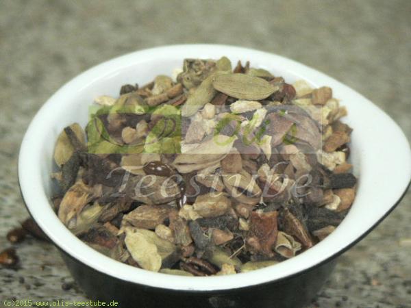 Zutaten: Cardamon*, Cassia Zimt*, Nelken, Ingwer*, Schwarzer Pfeffer*.