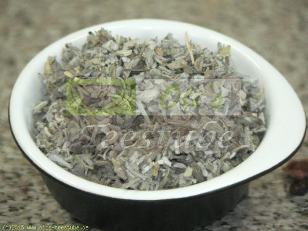 Die Blätter des Salbeis wirken verdauungsfördernd, weshalb er als Gewürz oft bei fetten Speisen zum Einsatz kommt. Beispiele hierfür wären Aalsuppe oder gebratener Aal, Omletts oder Aufläufe, genauso wie fette Scweine-, Kalbs-, Hammel- oder Wildgeflügelgerichte. Salbei sollte sparsam verwendet werden. Salbei wird sehr oft in Kräutertees mit beigemischt.
