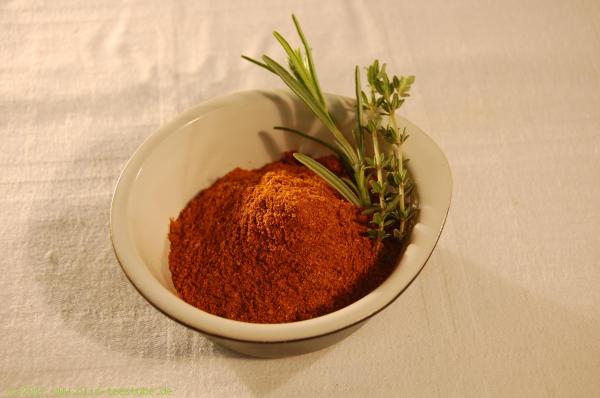 Zutaten: Paprika*, Knoblauch*, Chili*, Meersalz, Pfeffer*, Coriander*, Cumin*